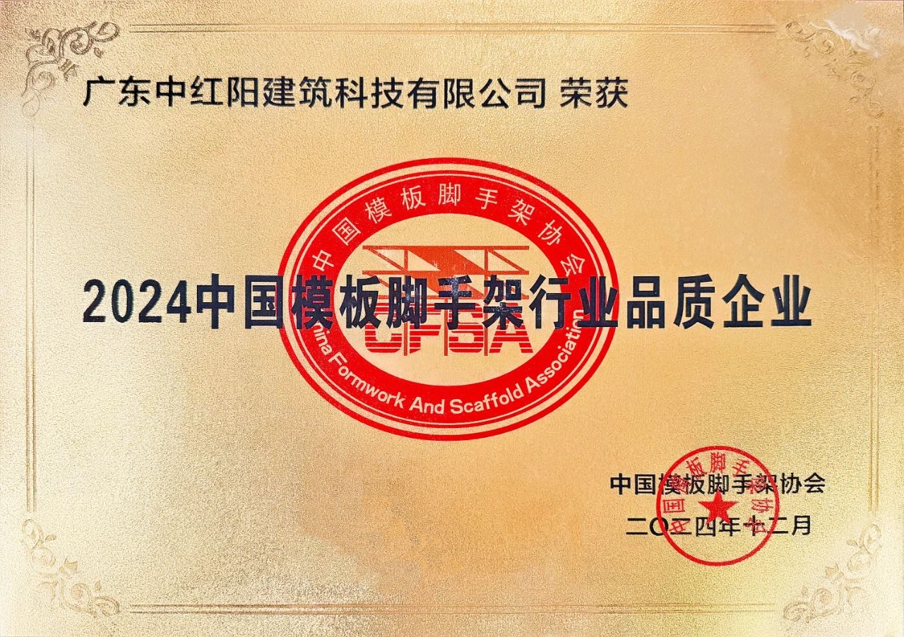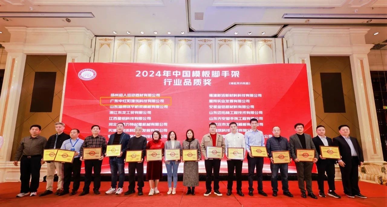 喜訊丨中紅陽建筑榮獲“2024中國模板腳手架行業(yè)品質(zhì)企業(yè)”