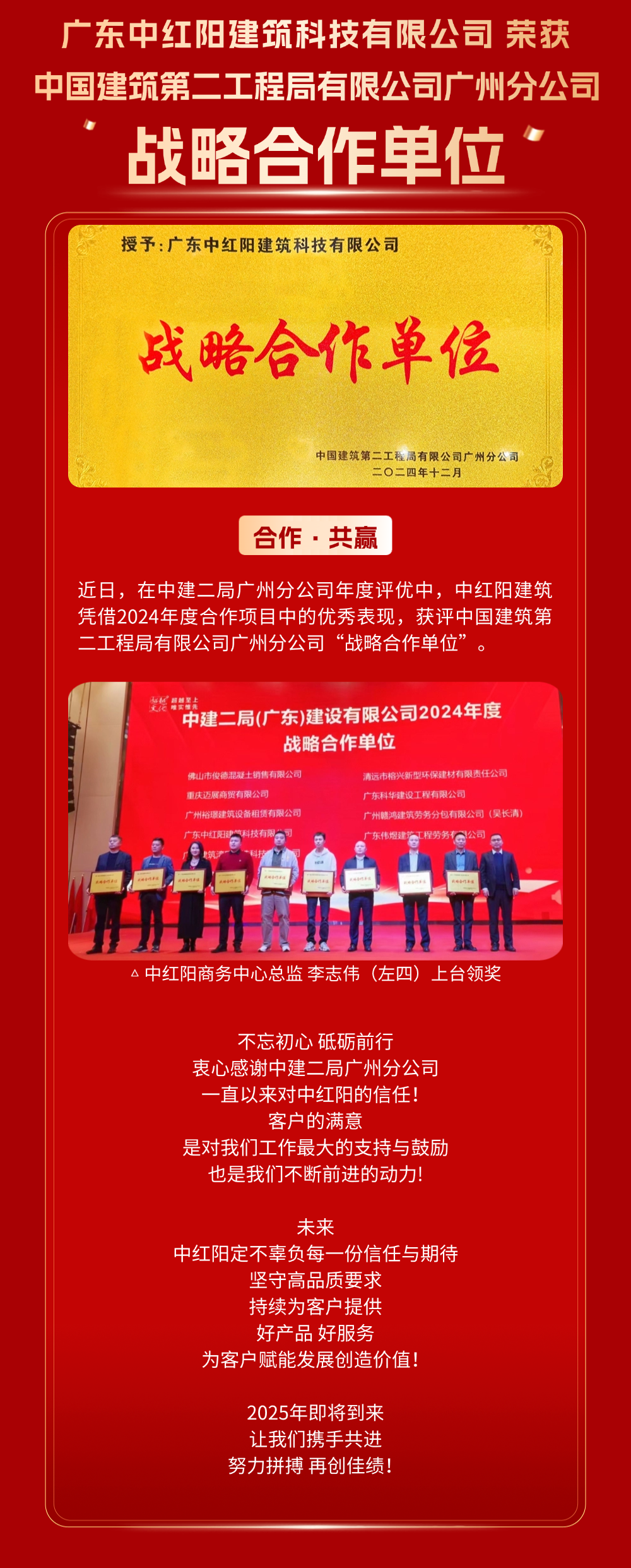 中紅陽(yáng)建筑獲評(píng)中建二局廣州分公司“戰(zhàn)略合作單位”